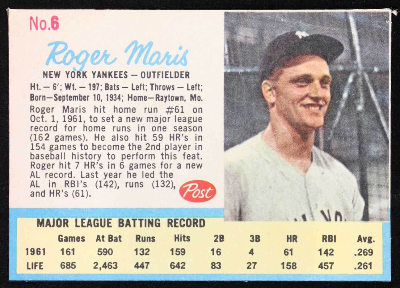 Roger Maris 1962 Post #6