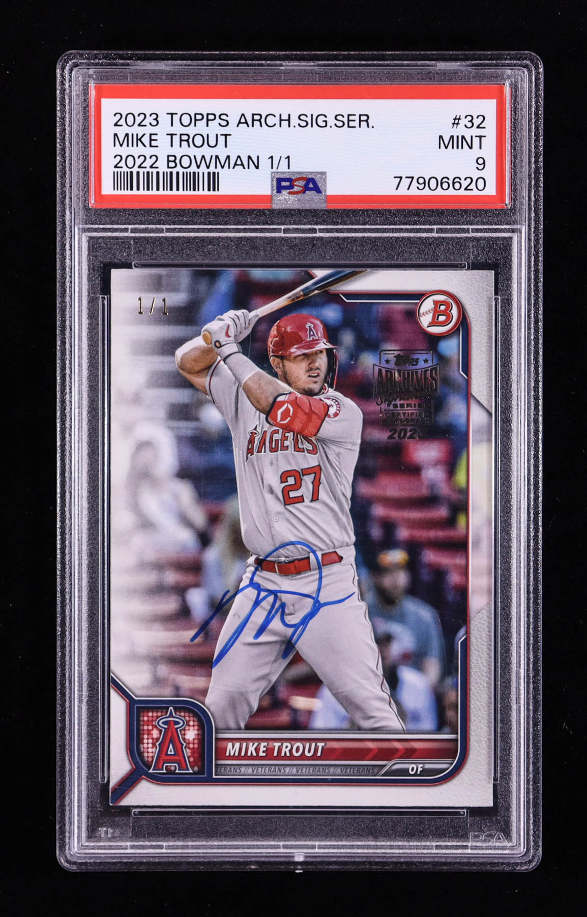 Mike Trout 2023 Topps Archives Signature Series / '22 Bowman #32 #1/1 (PSA 9)
