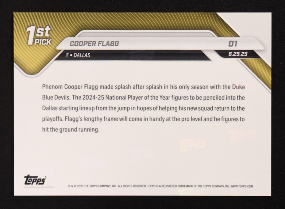 Cooper Flagg 2025-26 Topps Now #D1 RC
