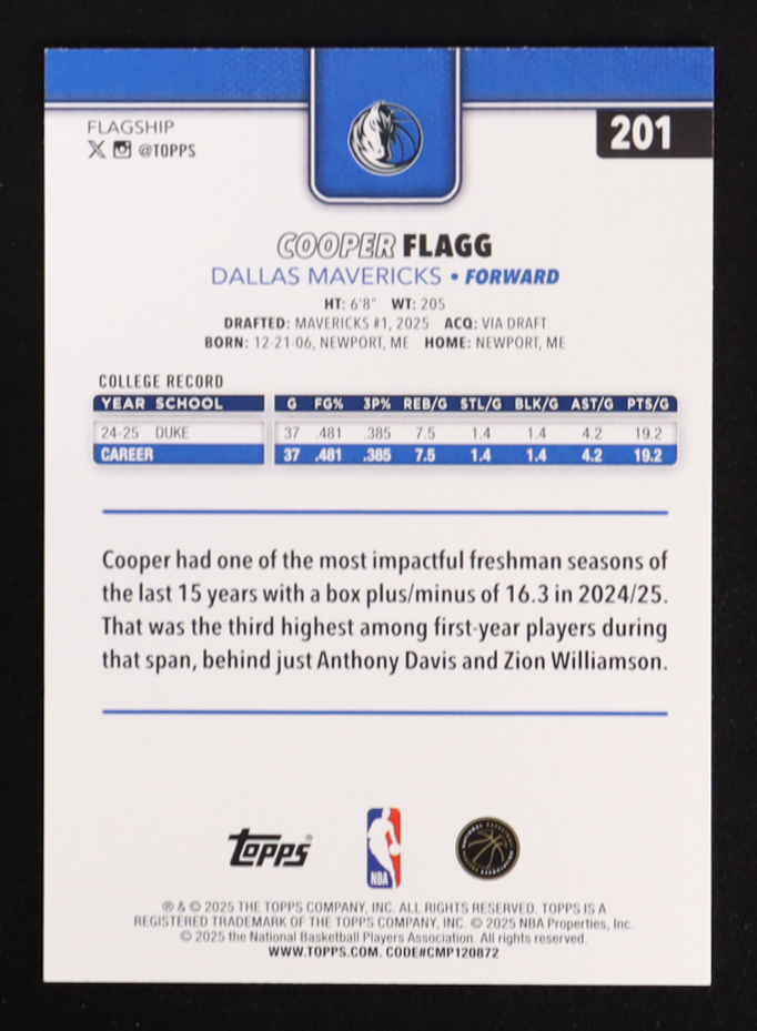 Cooper Flagg 2025-26 Topps #201 RC