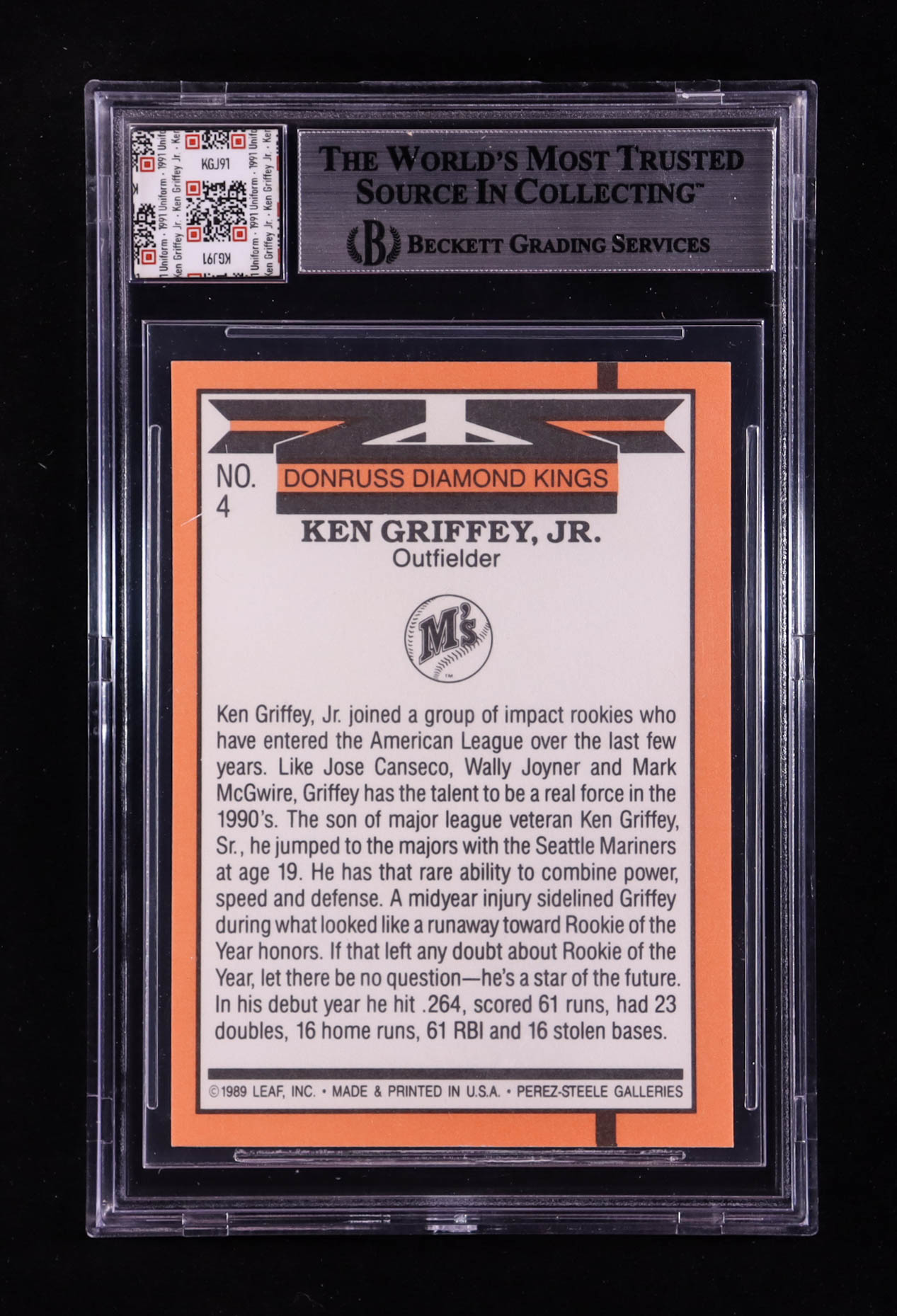 Ken Griffey Jr. 1990 Donruss #4 With Game Used Swatch (BGS)