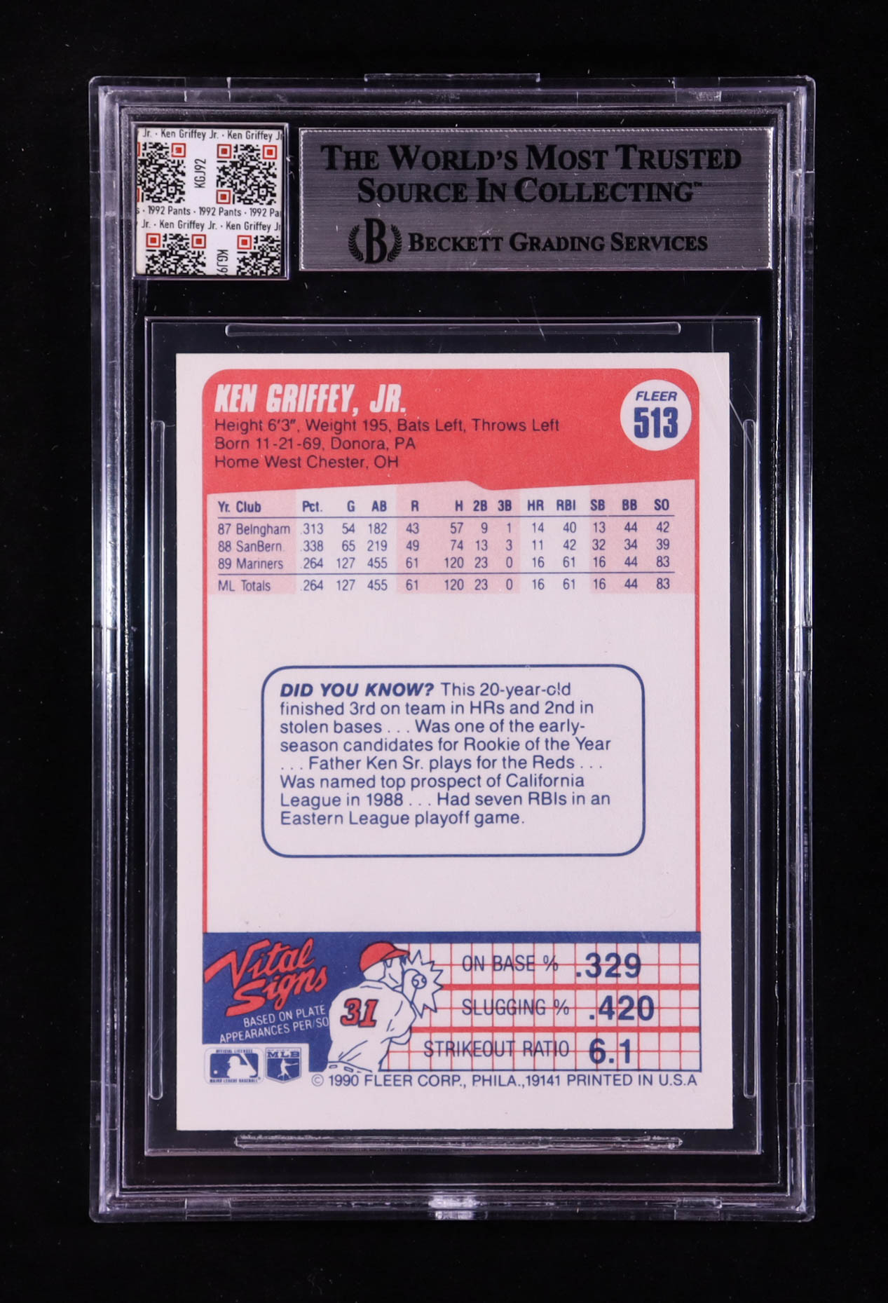 Ken Griffey Jr. 1990 Fleer #513 With Game Used Swatch (BGS)