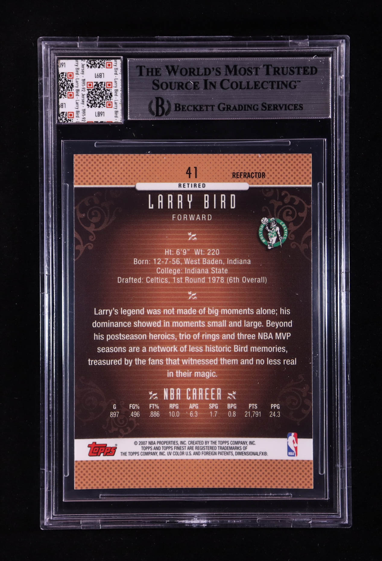 Larry Bird 2006-07 Finest Refractors #41 With Game-Used Swatch (BGS)