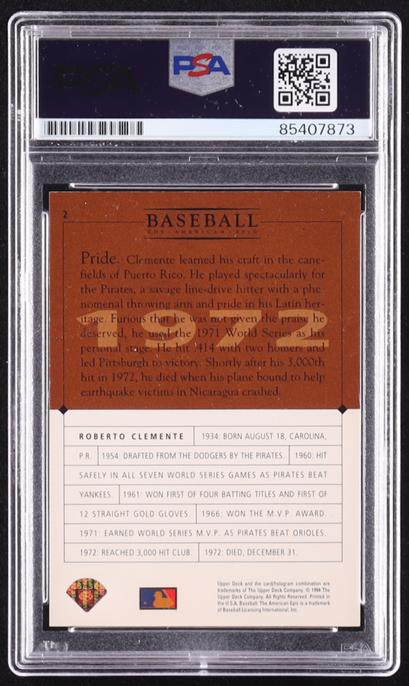 Roberto Clemente Jr. Signed 1994 Upper Deck: The American Epic GM #2 Roberto Clemente (PSA | Autograph Graded 10)