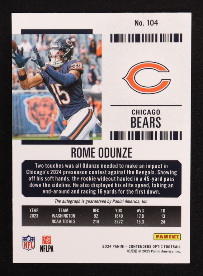 Rome Odunze 2024 Panini Contenders Optic #104 Autograph RC
