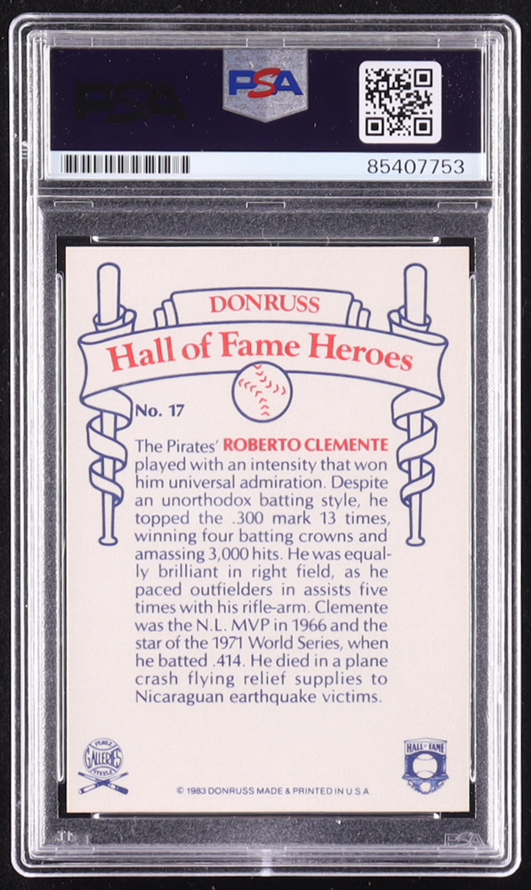Roberto Clemente Jr. Signed 1983 Donruss HOF Heroes #17 Roberto Clemente (PSA | Autograph Graded 10)
