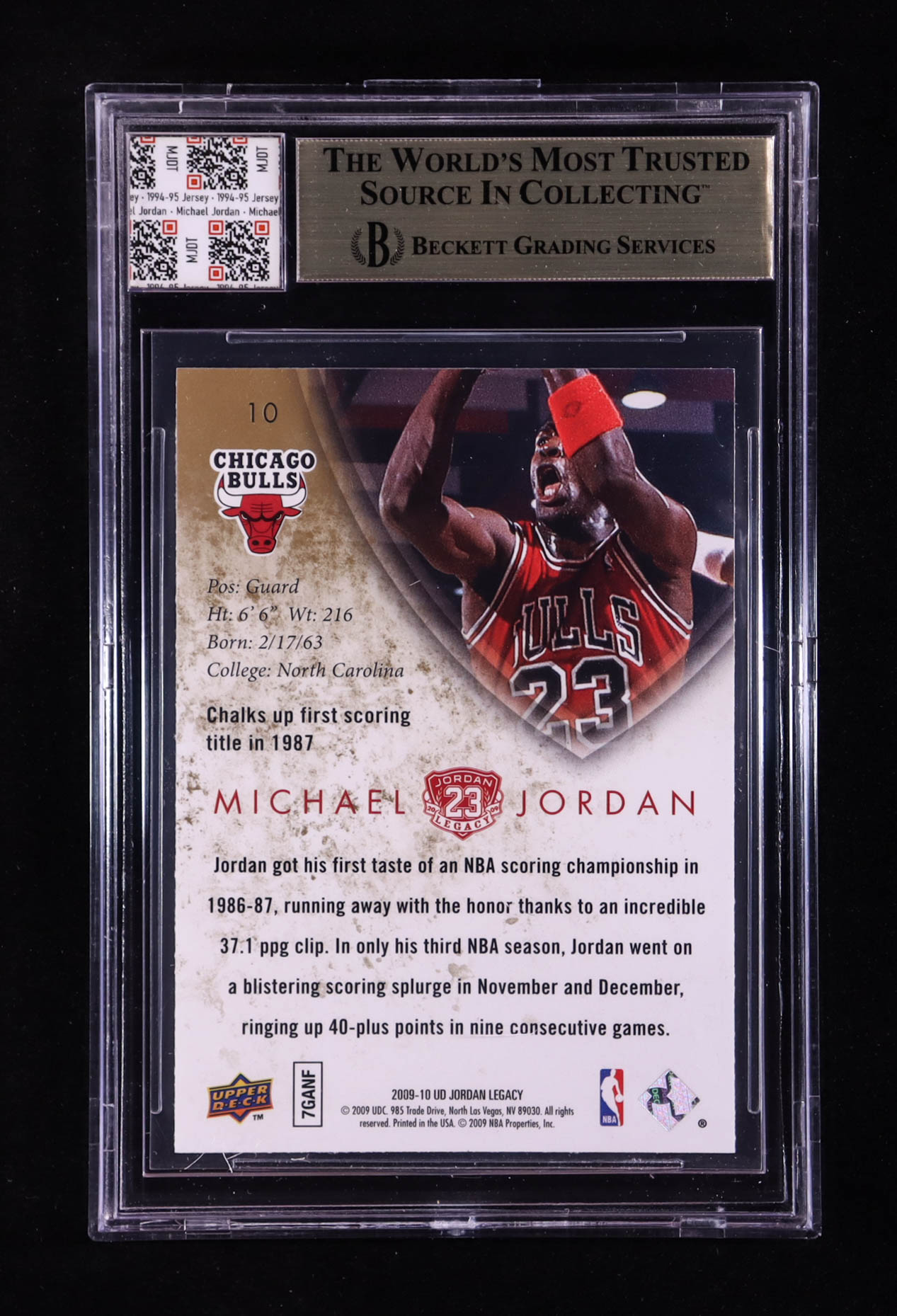 Michael Jordan 2009-10 Upper Deck Michael Jordan Legacy Collection #10 With Game-Used Jersey Swatch (BGS 9.5)