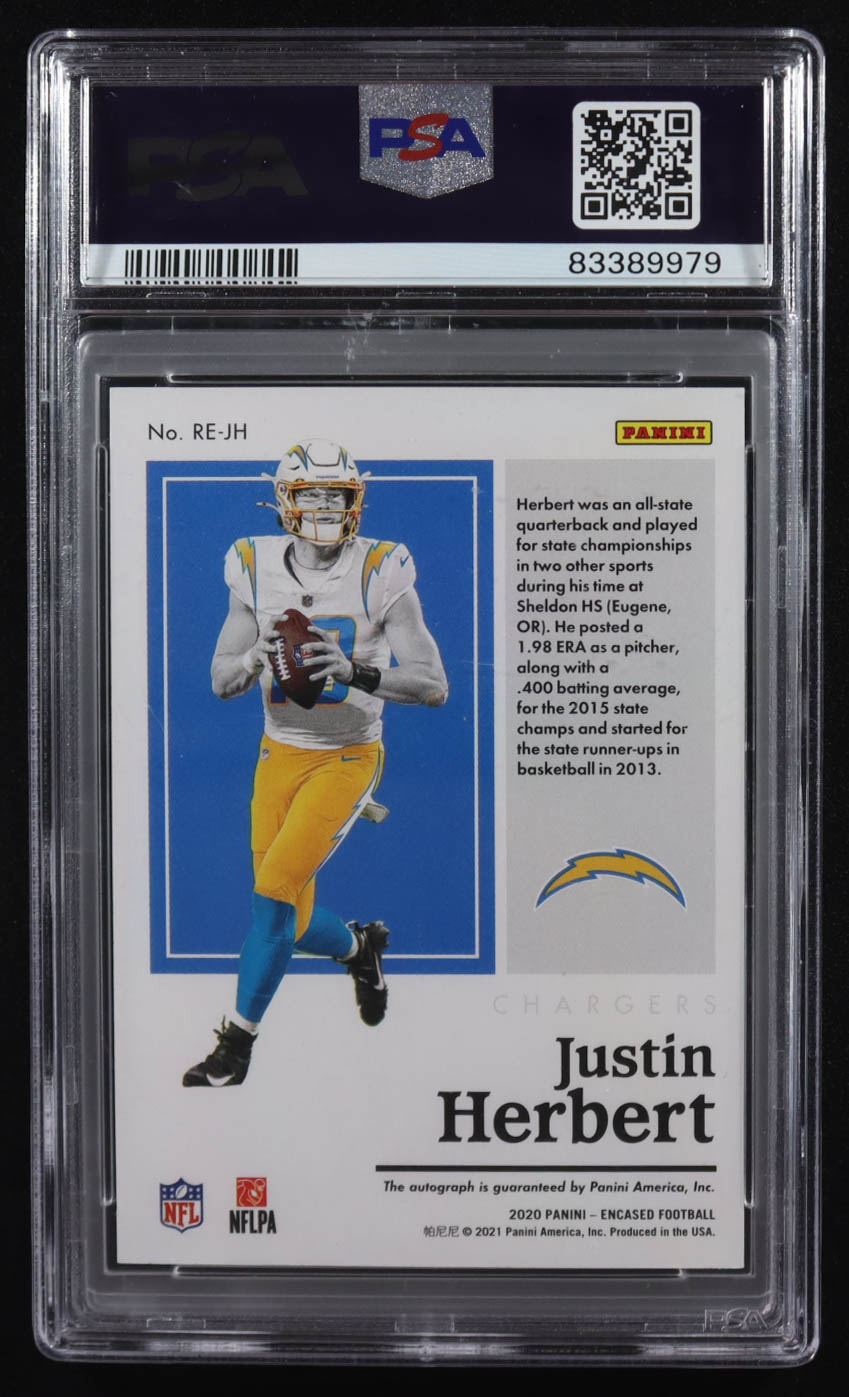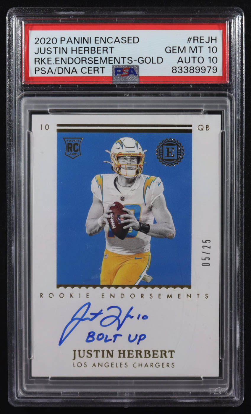 Justin Herbert Signed 2020 Panini Encased Inscribed "Bolt Up" Rookie Endorsements Gold #RE-JH RC #05/25 (PSA 10 | Autograph Graded PSA 10)