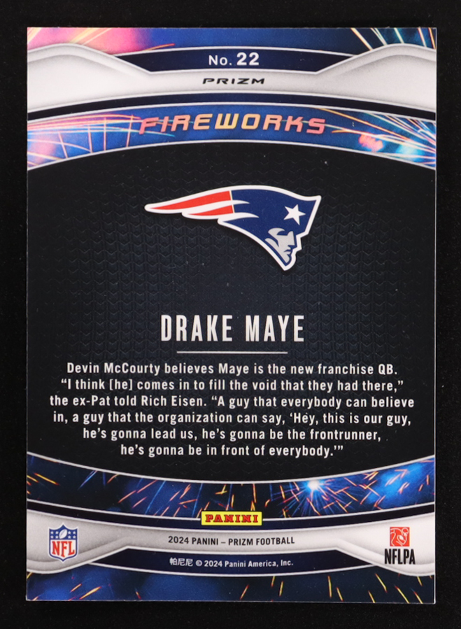 Drake Maye 2024 Prizm Fireworks Prizms Green #22 RC