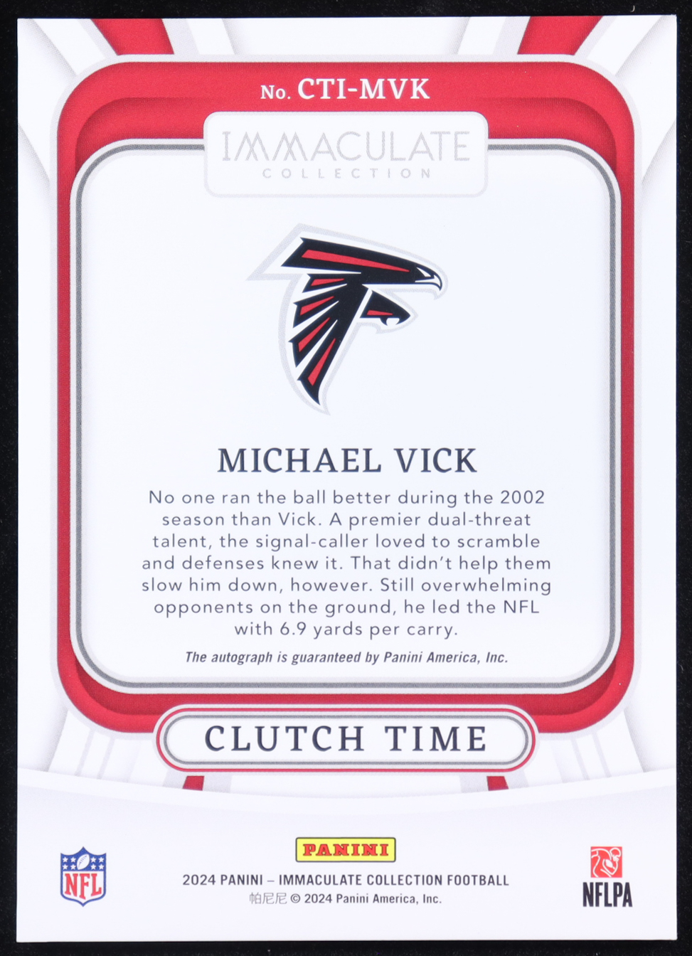 Michael Vick 2024 Immaculate Collection Clutch Time Ink Autographs #10 #86/99