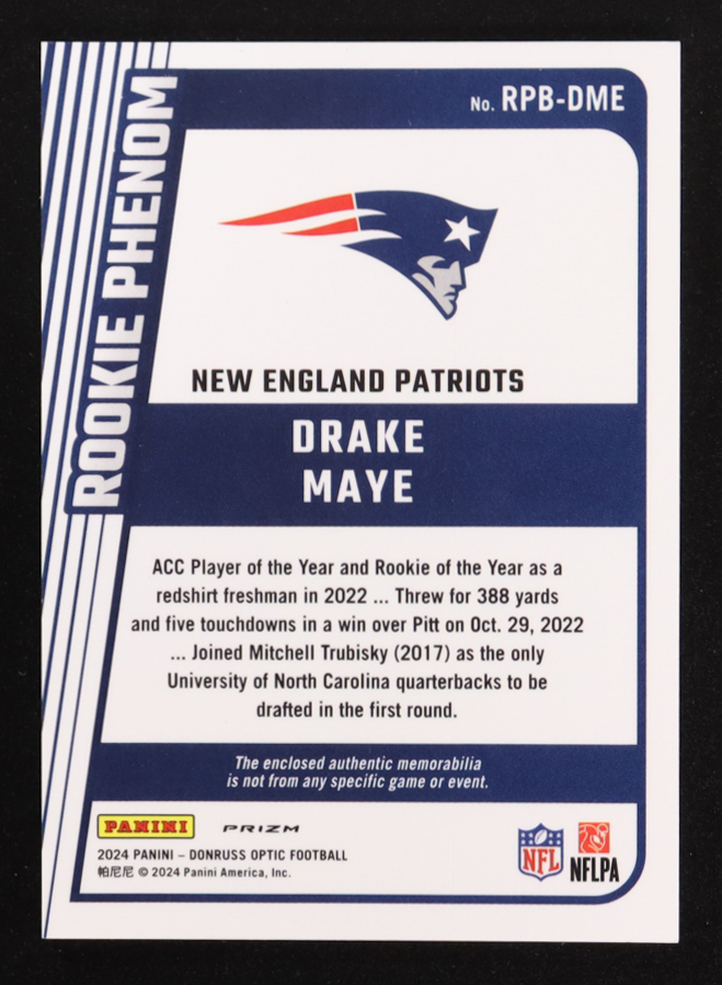 Drake Maye 2024 Donruss Optic Rookie Phenoms Blue Hyper #12 RC