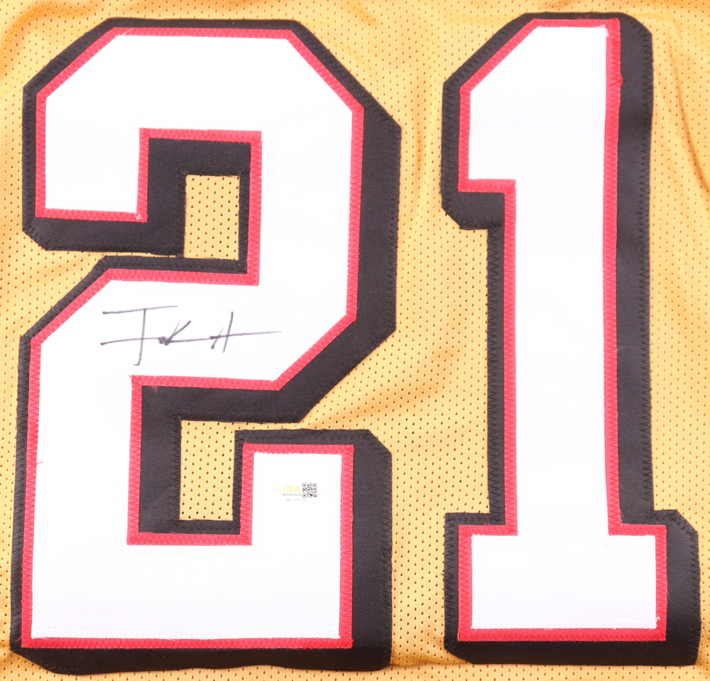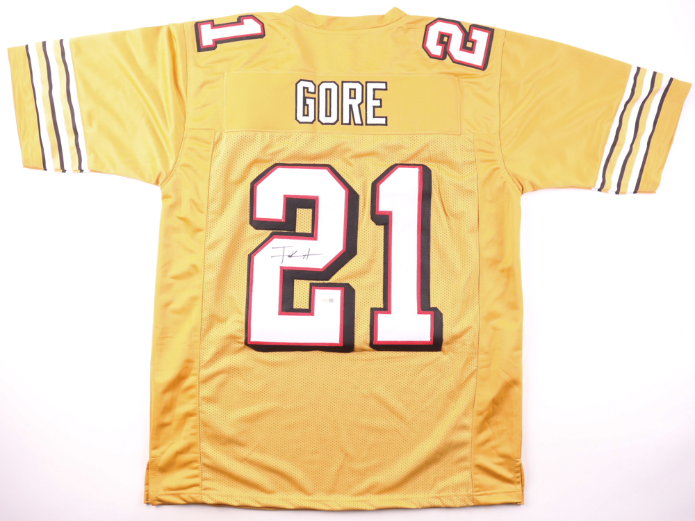 Custom jersey with everything sewn on, size XL. Hand-signed by Frank Gore.