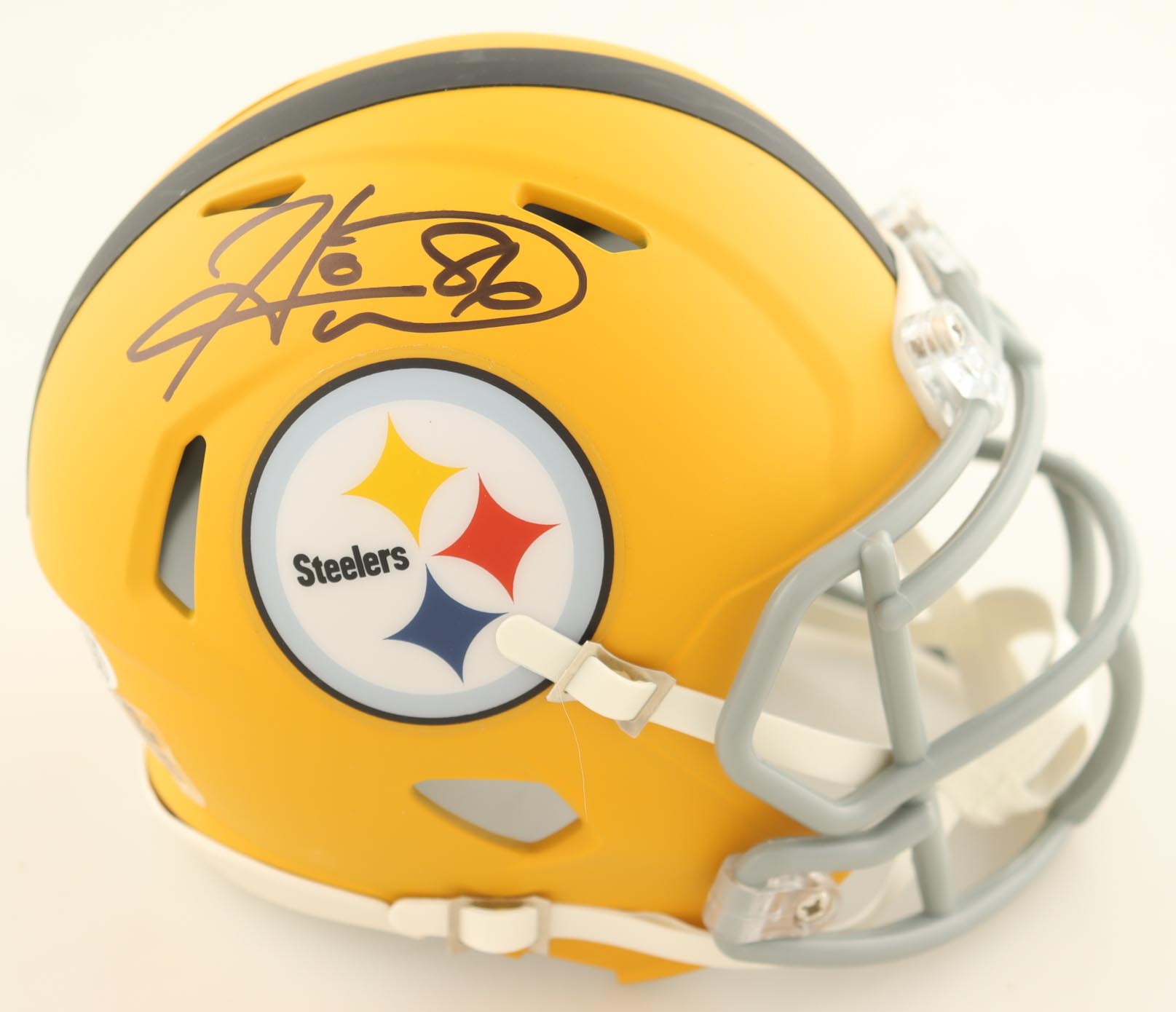 Riddell Pittsburgh Steelers Rave Alternate Speed Mini Helmet. Hand-signed by Hines Ward.