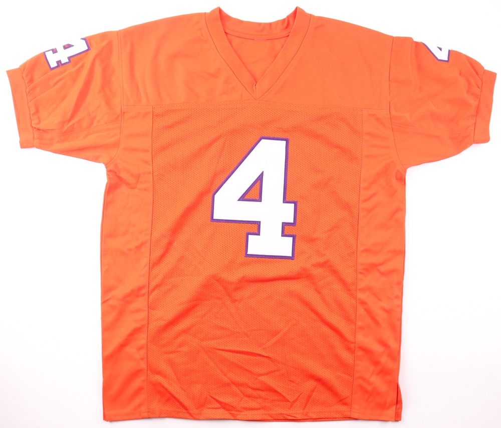 Custom jersey with everything sewn on, size XL. Hand-signed by Deshaun Watson.