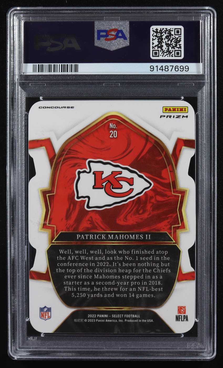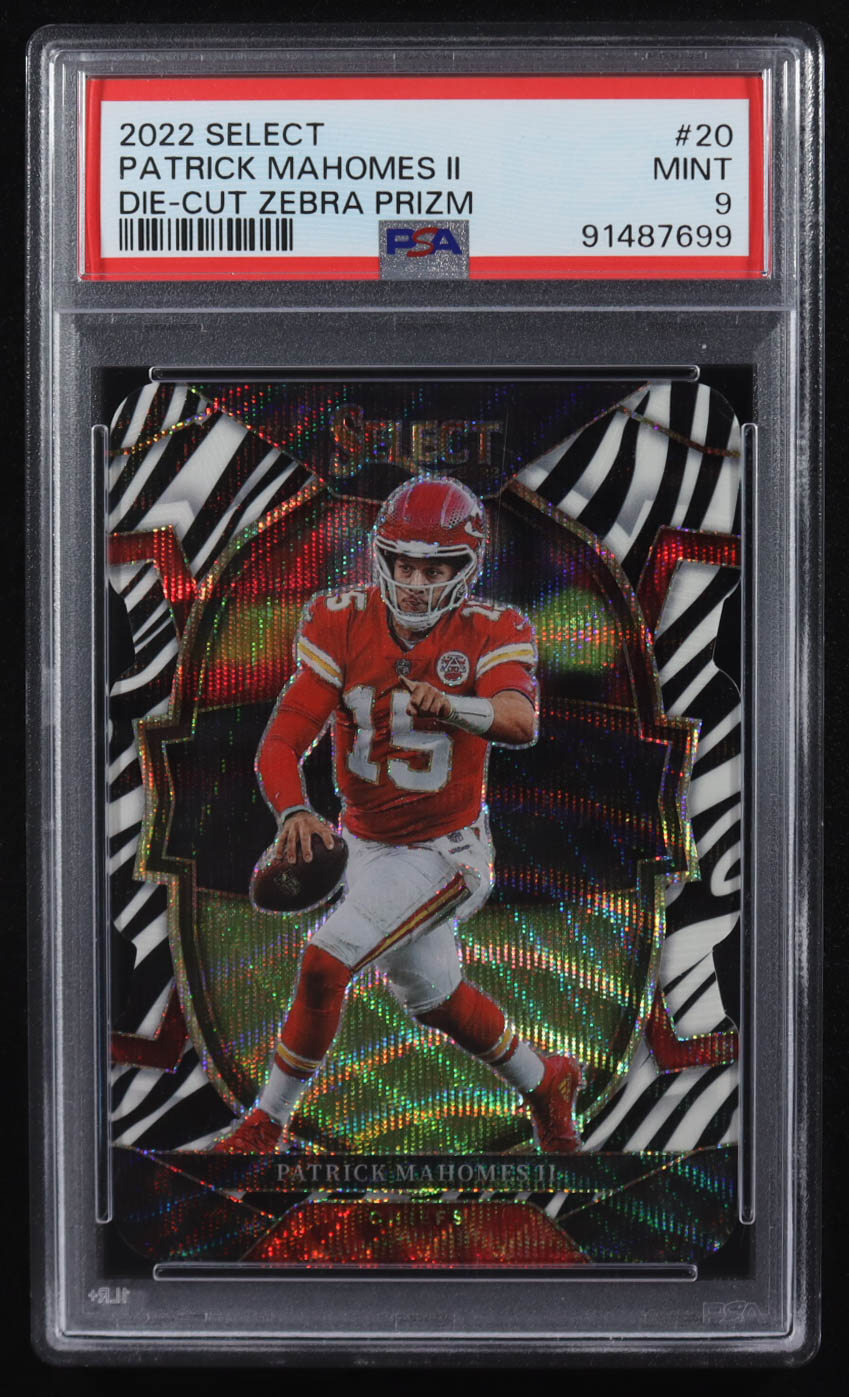 Patrick Mahomes II 2022 Panini Select Die-Cut Zebra Prizm #20 (PSA 9)