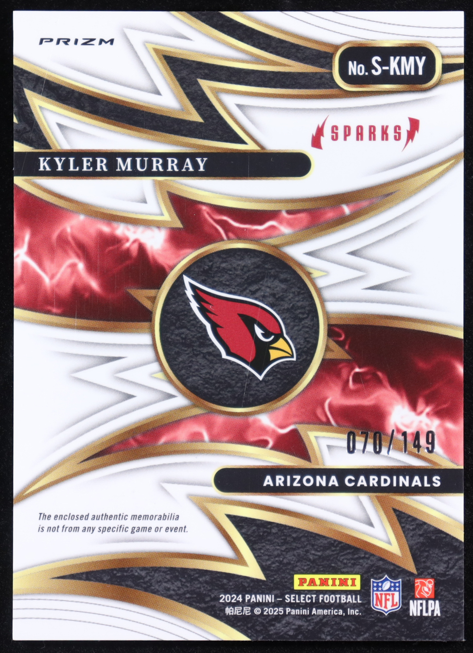 Kyler Murray 2024 Select Sparks Materials Prizm #1 #070/149