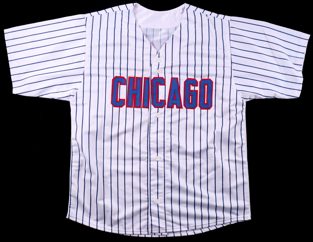 Custom jersey with everything sewn on, size XL. Hand-signed and inscribed by Kerry Wood.