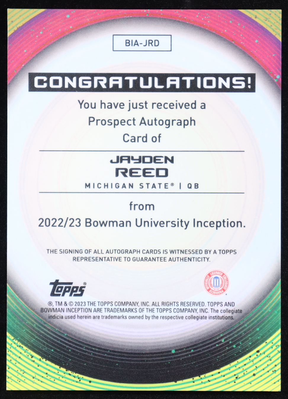 Jayden Reed 2022-23 Bowman University Inception Autographs #BIA-JRD RC