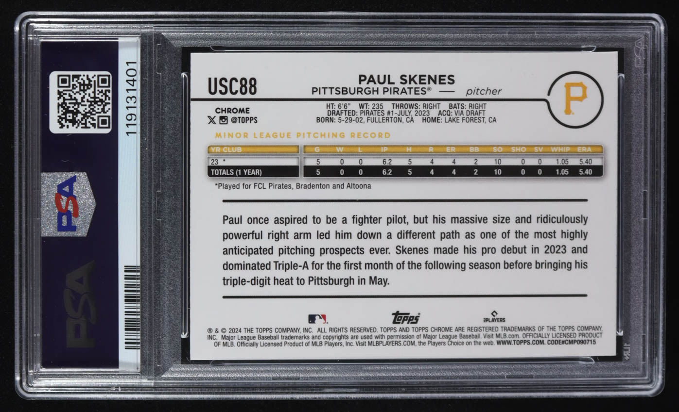 Paul Skenes 2024 Topps Chrome Update X-Fractor #USC-88 RC (PSA 10)