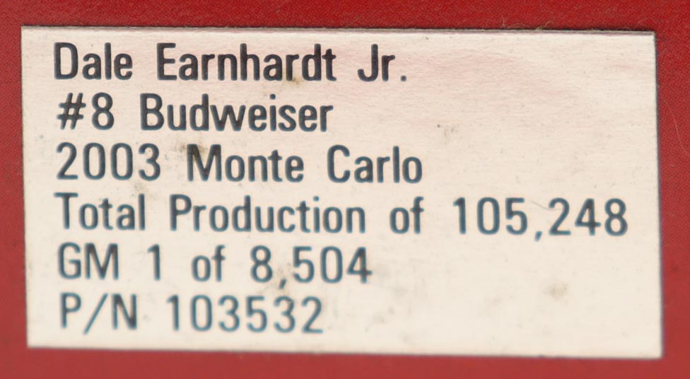 Dale Earnhardt Jr. Signed 2003 #8 Budweiser Monte Carlo 1:24 Diecast Car (JR Motorsports)