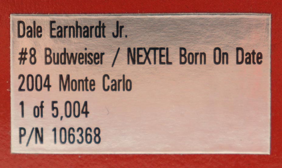 Dale Earnhardt Jr. Signed 2004 #8 Budweiser / NEXTEL Born On Date Monte Carlo 1:24 Diecast Car (JR Motorsports)