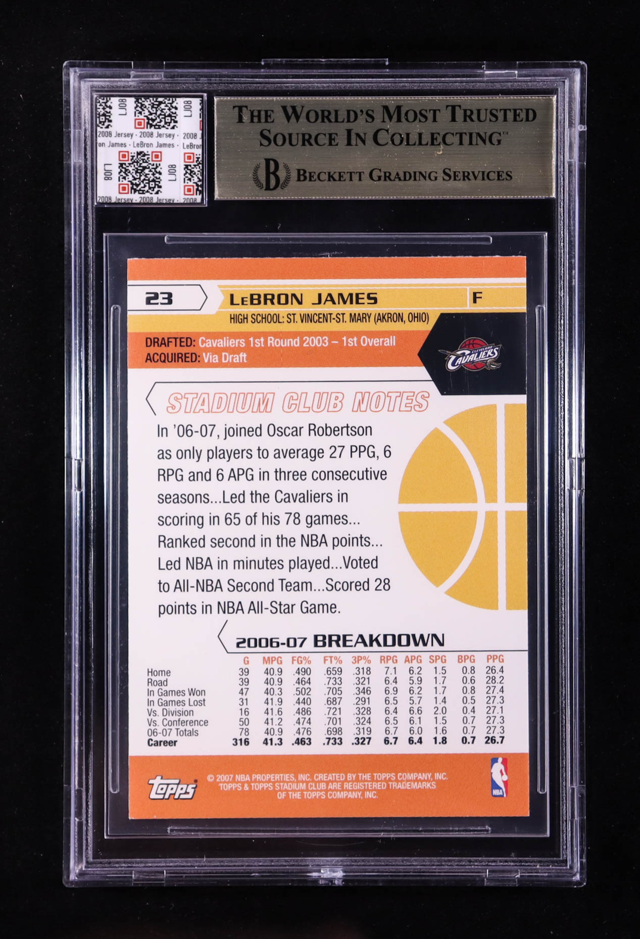 LeBron James 2007-08 Stadium Club #23 With Game-Used Jersey Swatch (BGS 9.5)