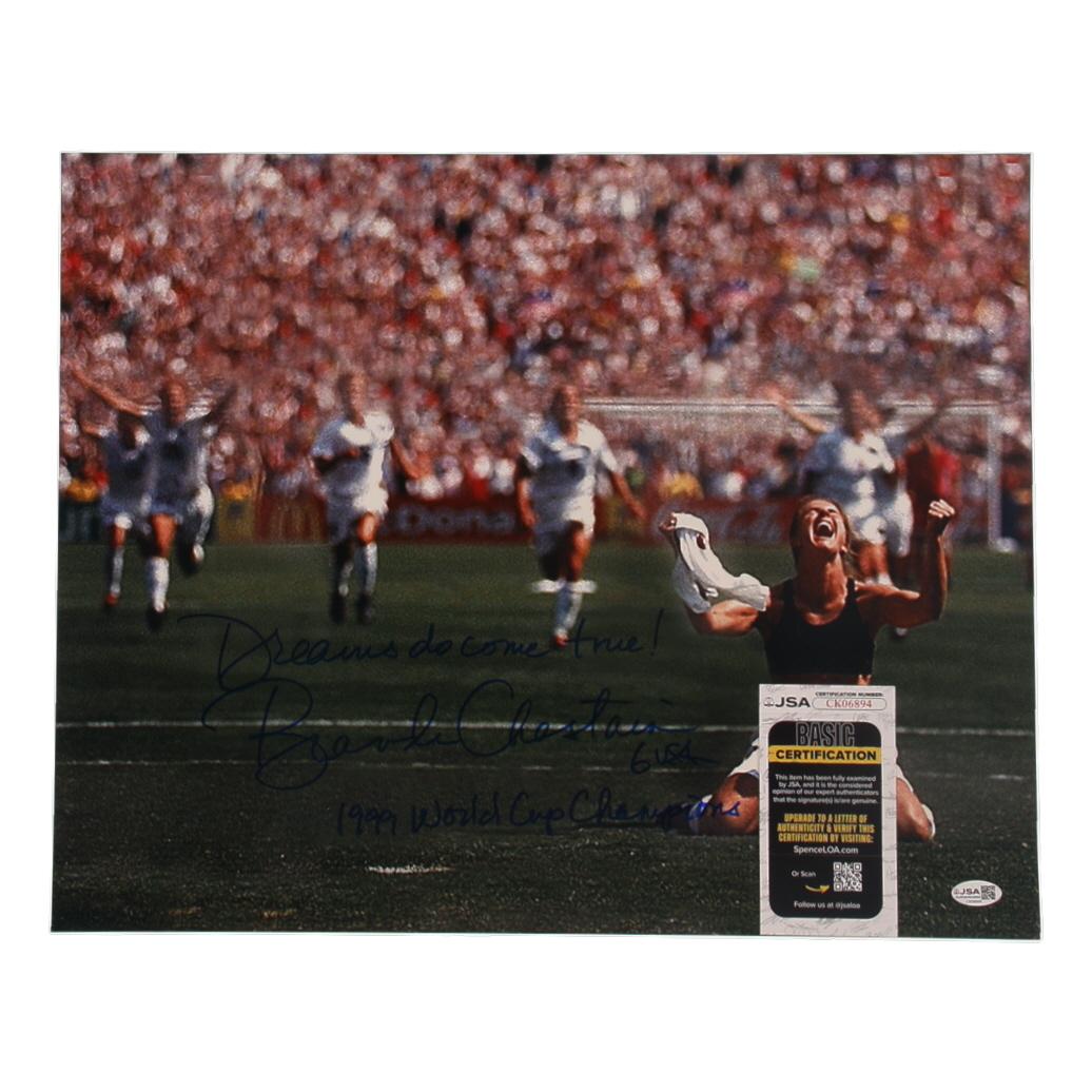 Photo measures 16" x 20" in size and has been hand-signed by Brandi Chastain (HOF).