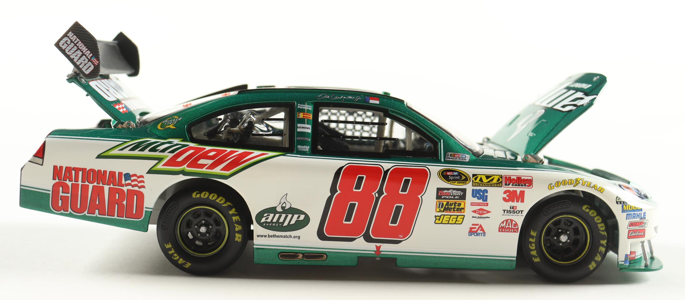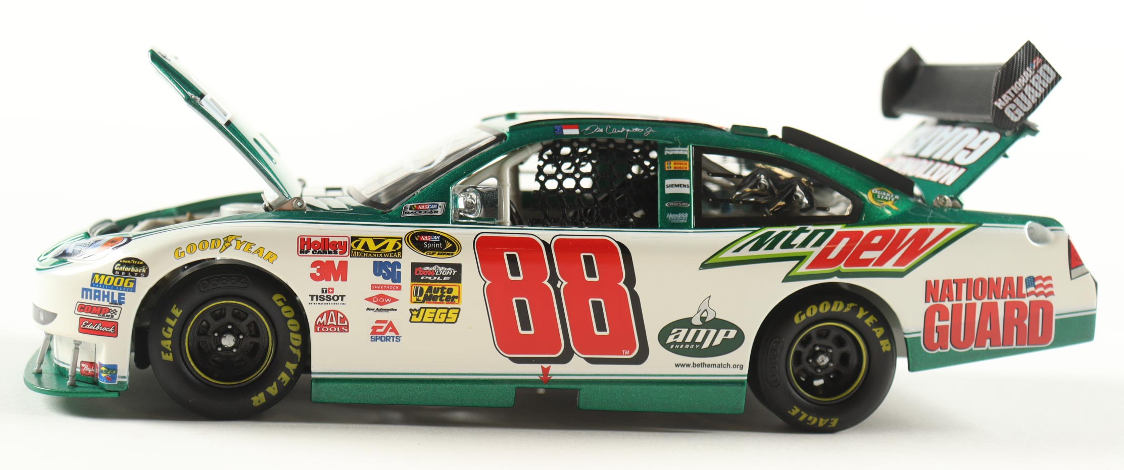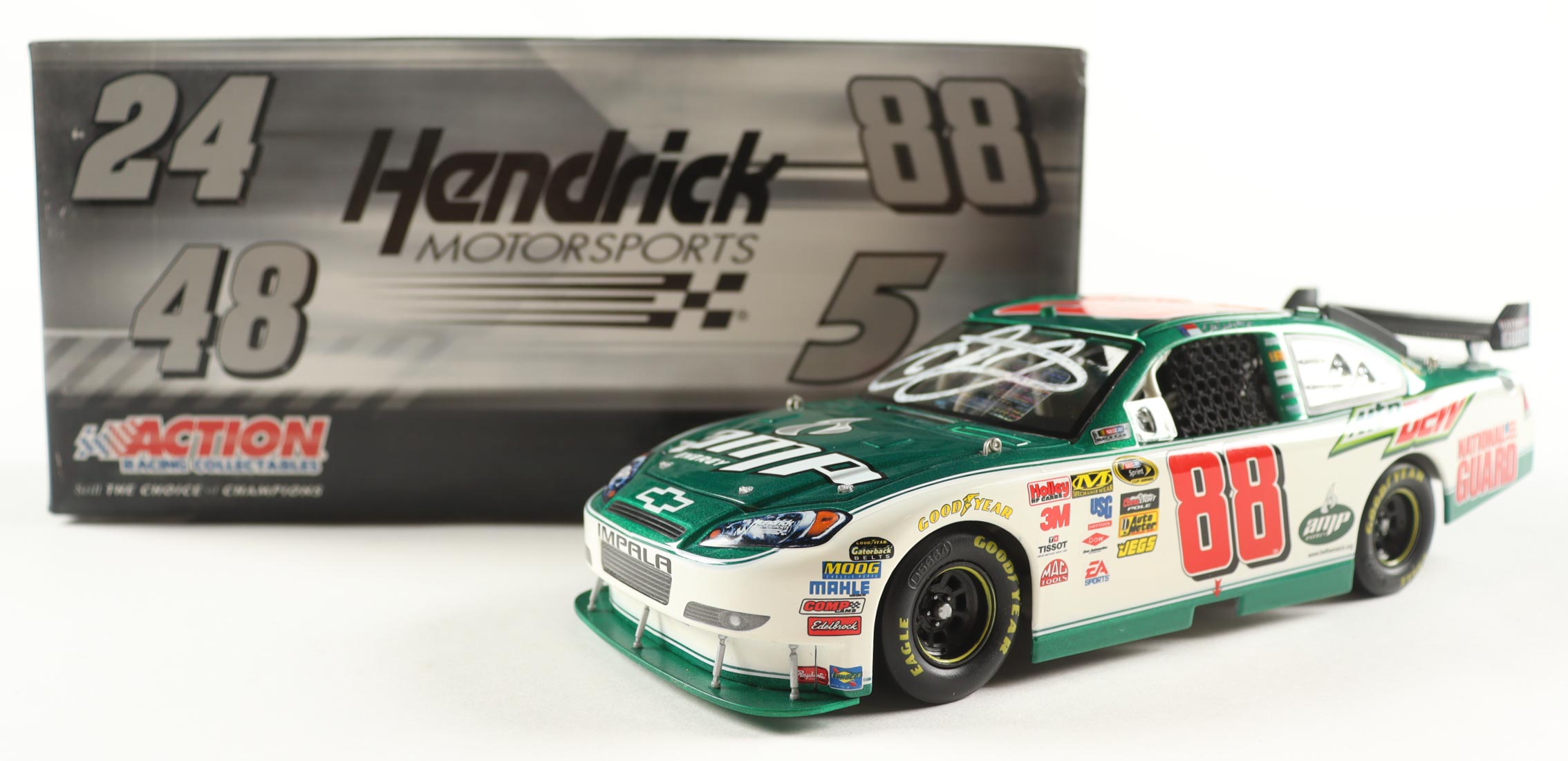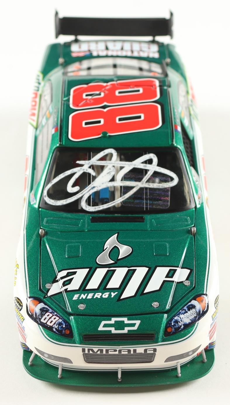 NASCAR premium die-cast car has been hand-signed on the windshield by Dale Earnhardt Jr.