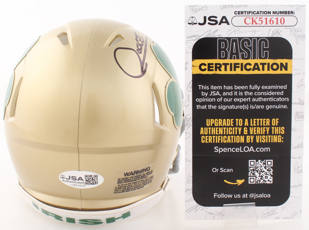 Riddell Notre Dame Fighting Irish Speed mini helmet. Hand-signed by Raghib Ismail.