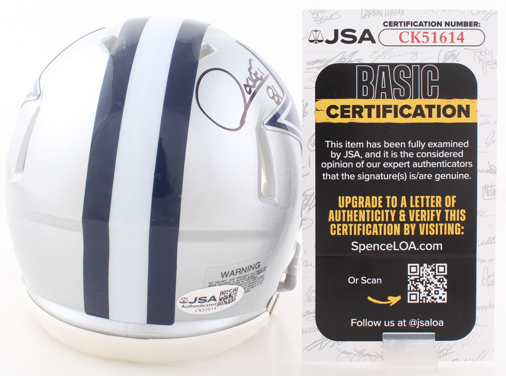 Riddell Dallas Cowboys Speed mini helmet has been hand-signed by Raghib Ismail.