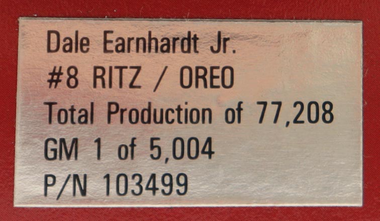 Dale Earnhardt Jr. Signed 2003 #3 RTIZ / OREO Monte Carlo 1:24 Diecast Car (JR Motorsports)