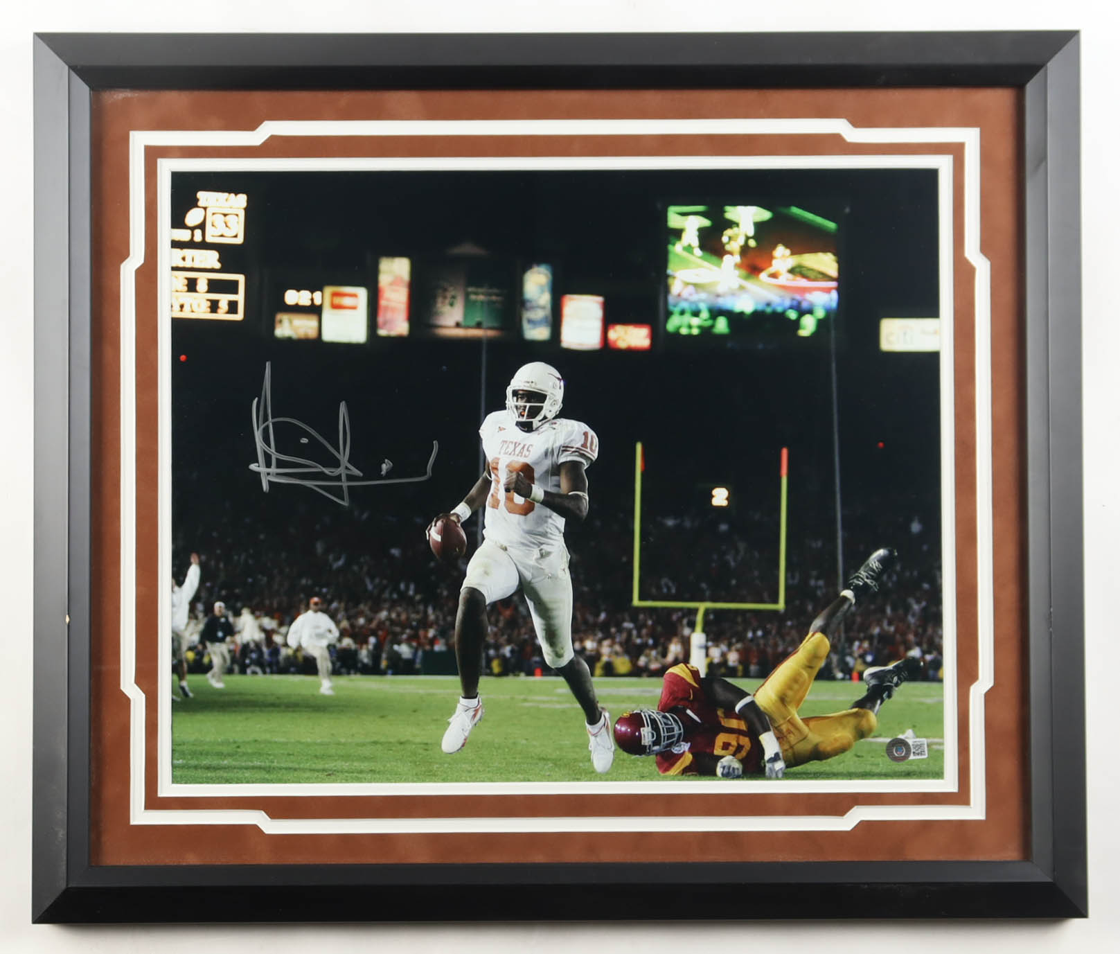 Vince Young Signed Texas Longhorns Custom Framed Photo (Beckett)