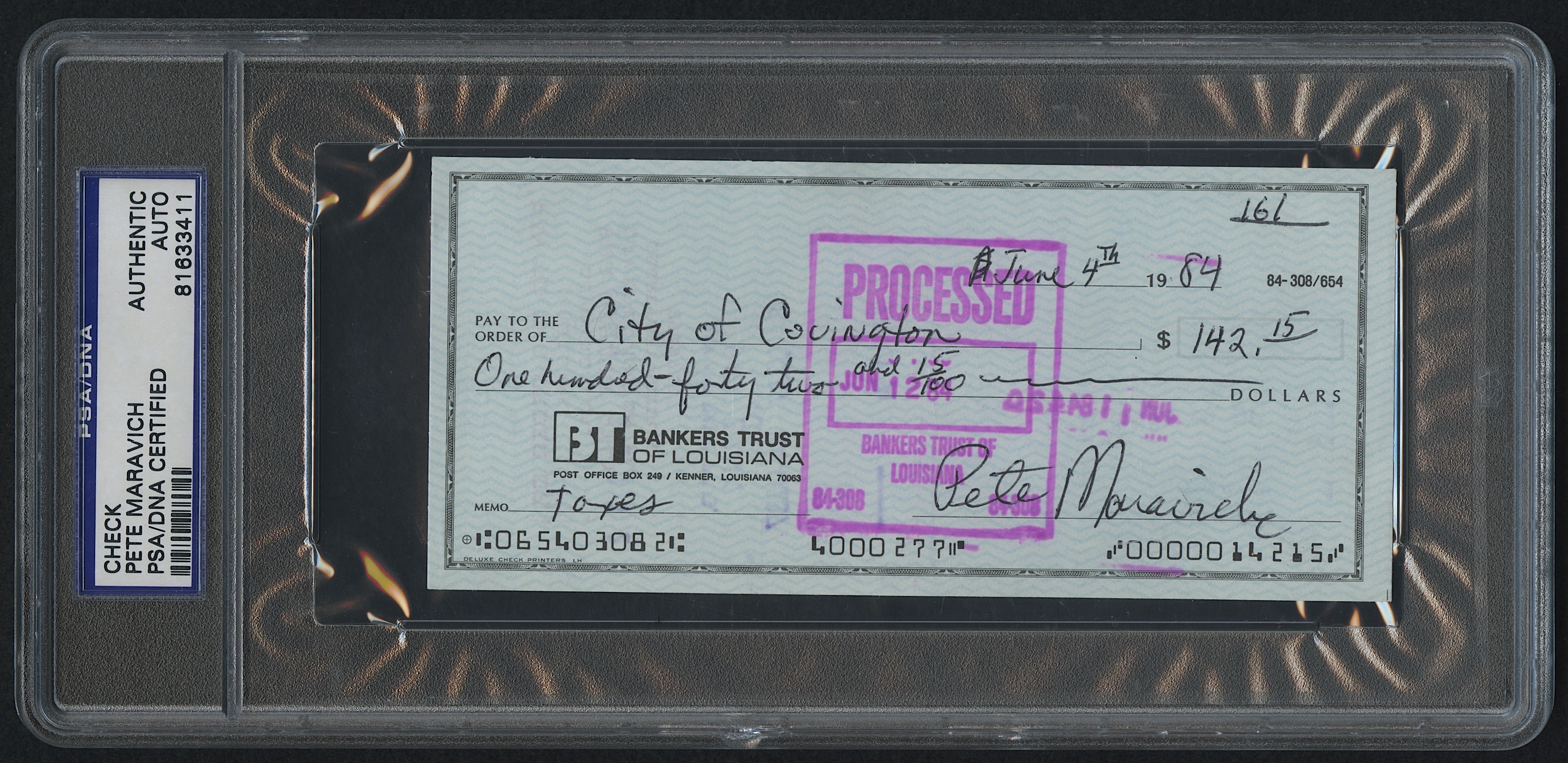 Pete Maravich Signed Original Personal Bank Check from 1984 (PSA)