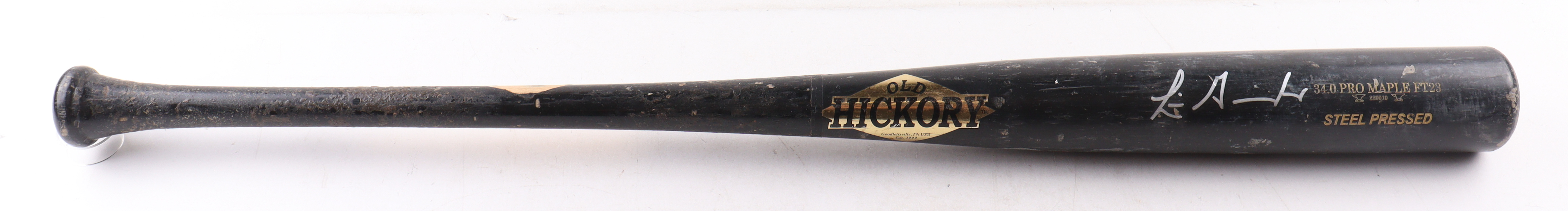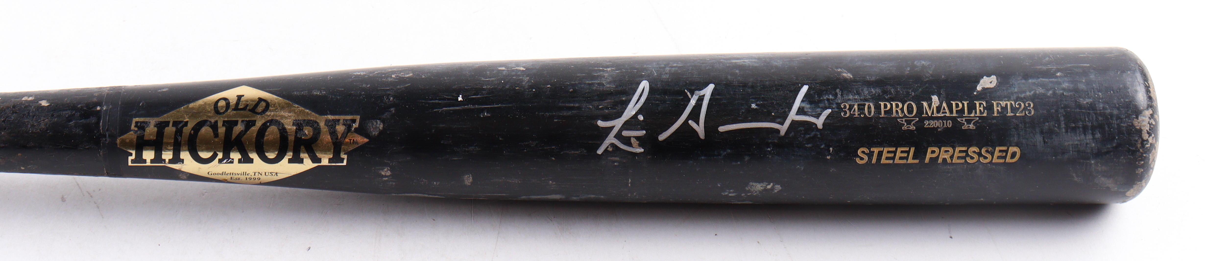 Old Hickory Pro Model baseball bat. Hand-signed by Luis Gonzalez (Arizona Diamondbacks). Please note, the bat has been game-used and cracked by an unknown player.