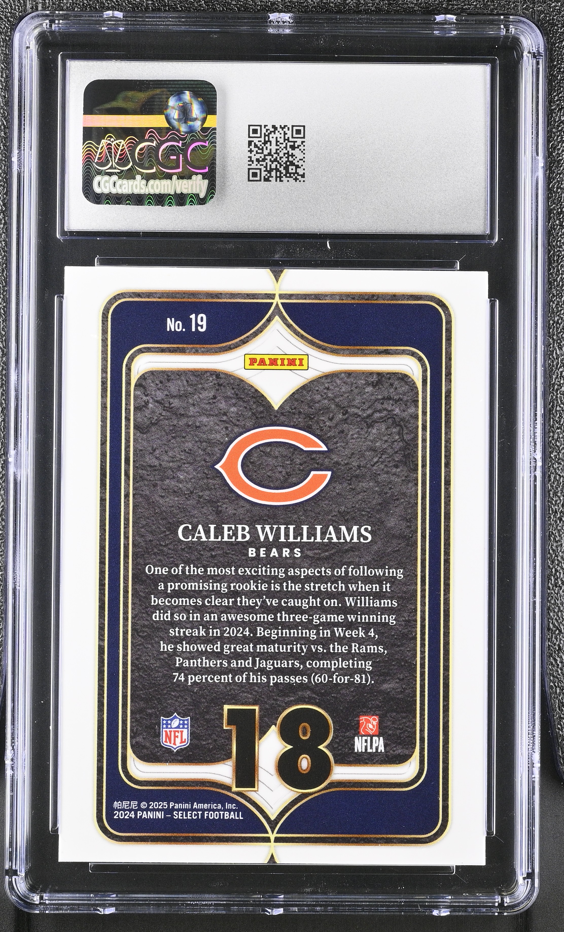 Caleb Williams 2024 Panini Select Numbers #19 RC (CGC GEM MINT 10)