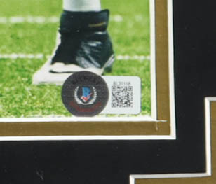 Custom frame measures 18" x 22" in size. Photograph is hand-signed by Drew Brees (New Orleans Saints).