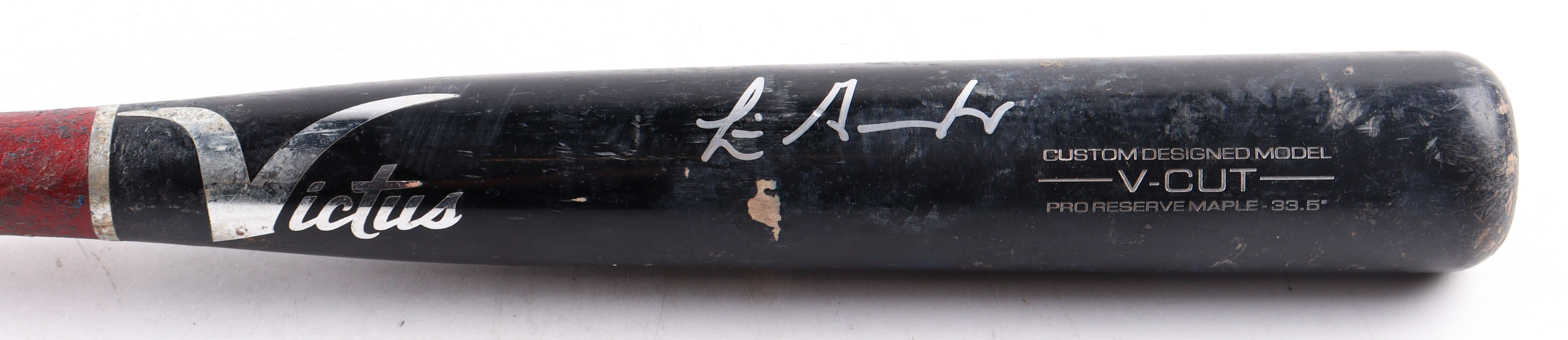 Victus Pro Baseball Bat . Hand-signed by Luis Gonzalez (Arizona Diamondbacks). Please note, the bat has been game-used and cracked by an unknown player.