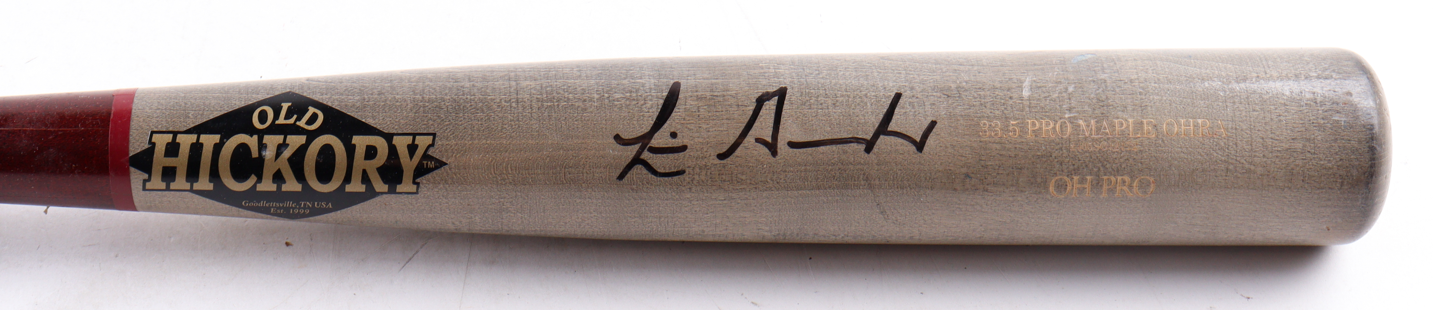 Old Hickory Oh Pro Model baseball bat. Hand-signed by Luis Gonzalez (Arizona Diamondbacks). Please note, the bat has been game-used and cracked by an unknown player.