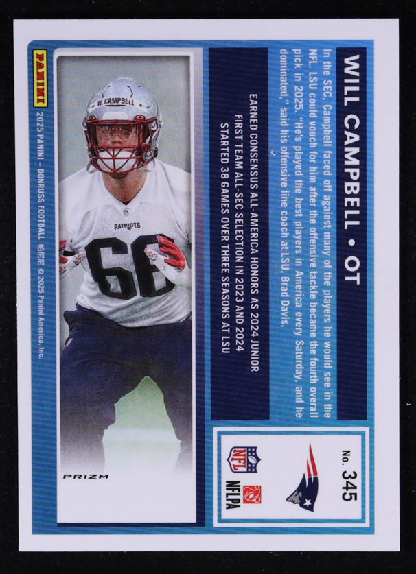Will Campbell 2025 Donruss Optic Rated Rookies Preview Pink #345 RR RC