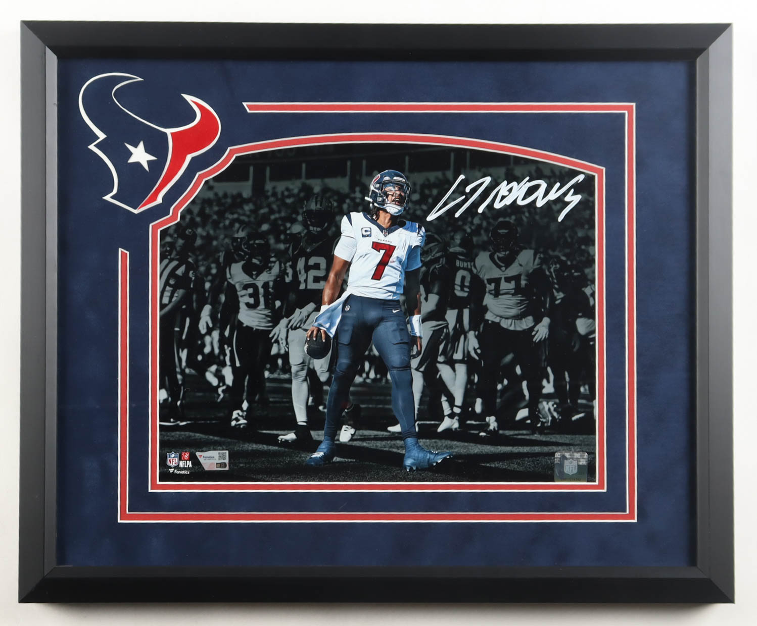 Custom frame measures 18" x 22" in size. Photograph is hand-signed by CJ Stroud (Houston Texans).