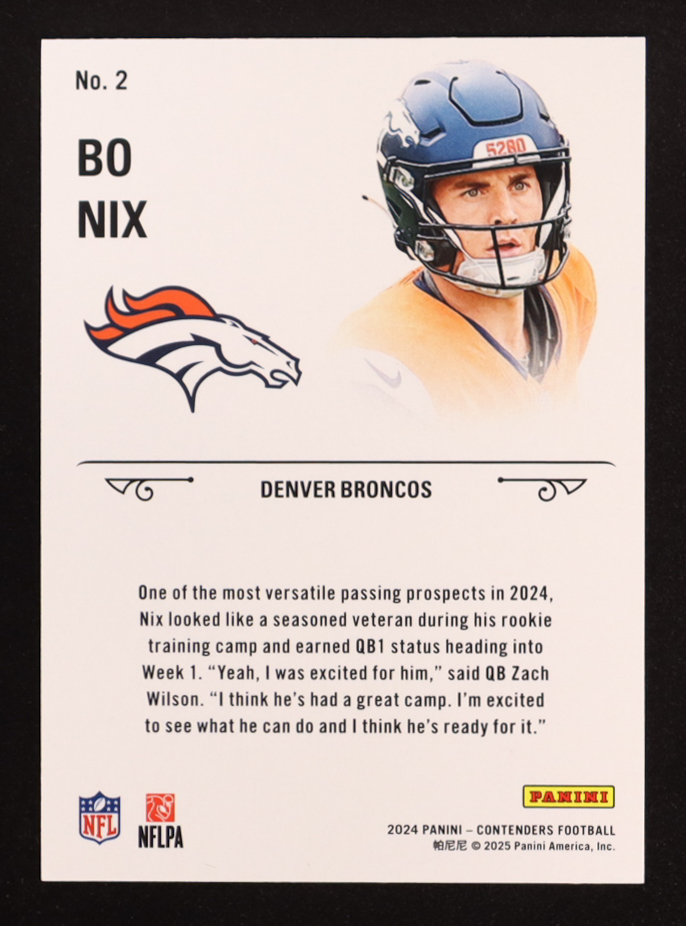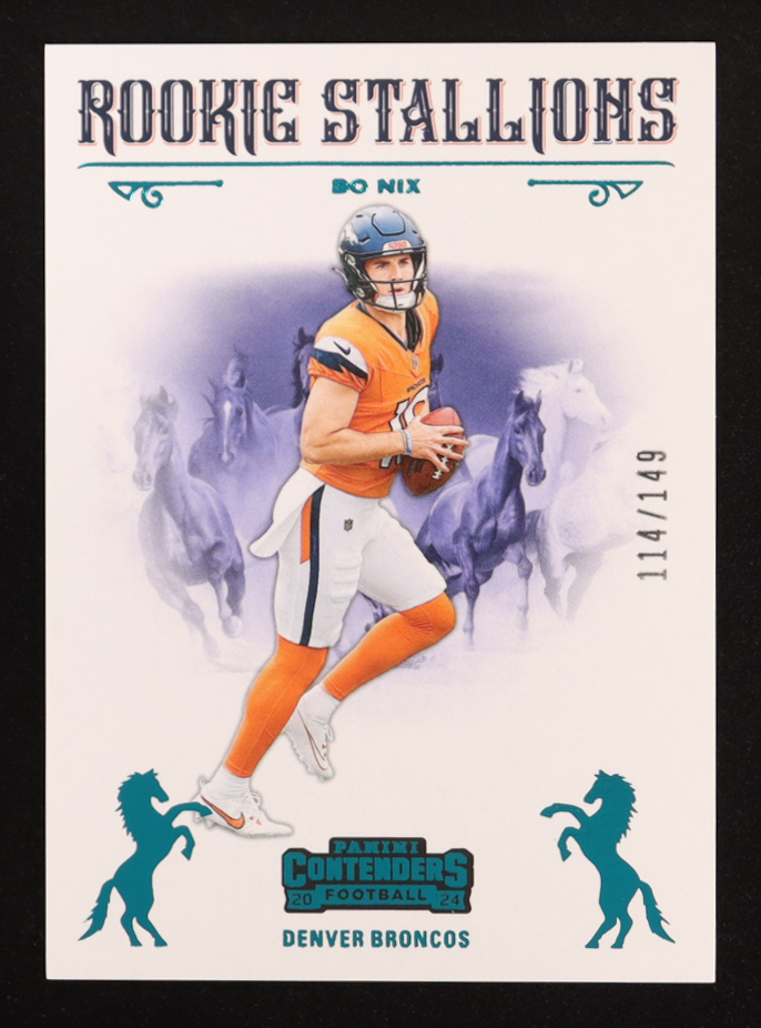 Bo Nix 2024 Panini Contenders Rookie Stallions Teal #2 #114/149 RC