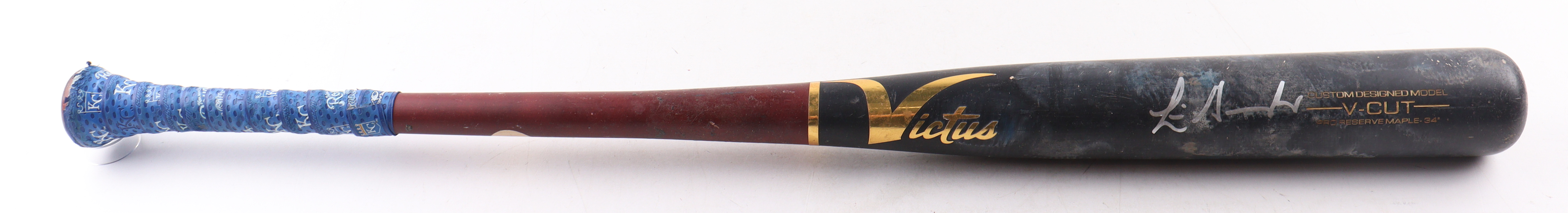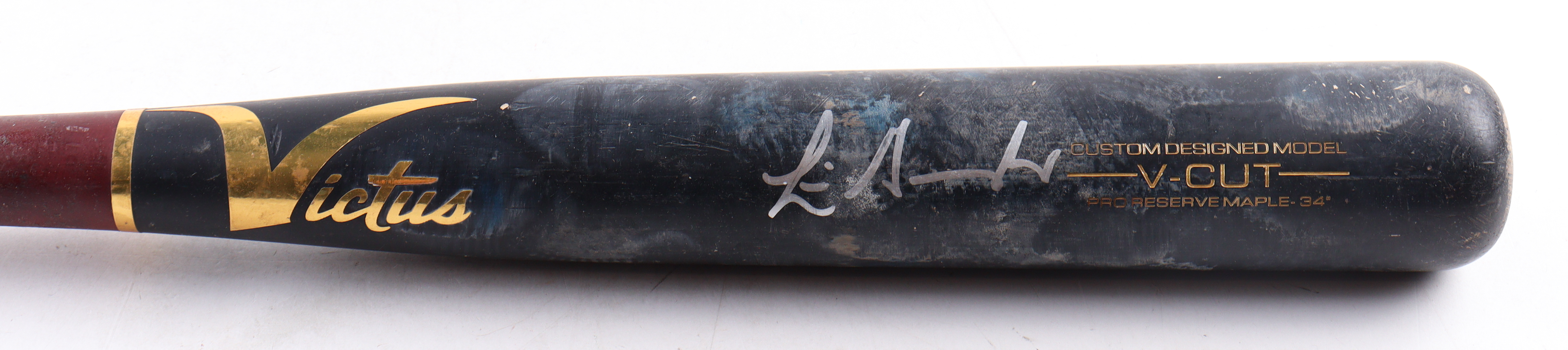Victus custom designed model V-Cut Baseball Bat. Hand-signed by Luis Gonzalez (Arizona Diamondbacks). Please note, the bat has been game-used and cracked by an unknown player.