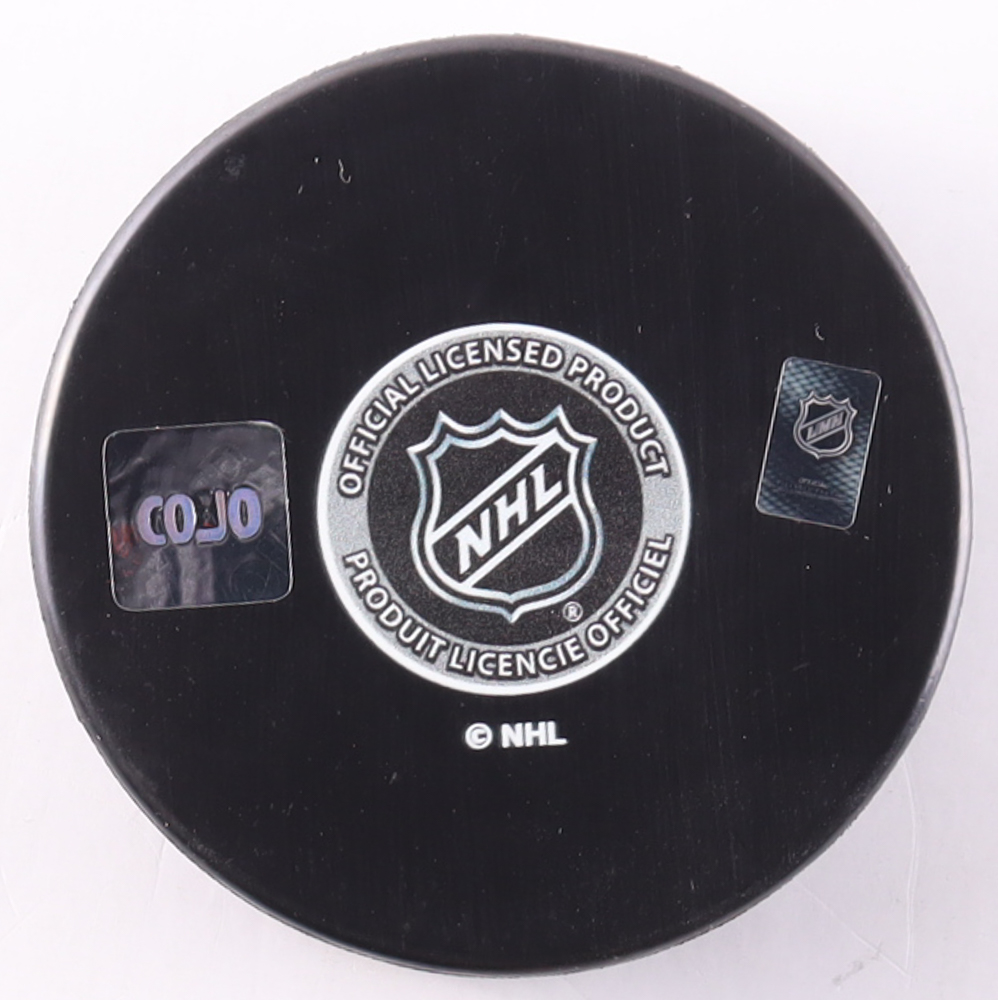 Detroit Red Wings logo hockey puck has been hand-signed by Dominik Hasek (HOF).