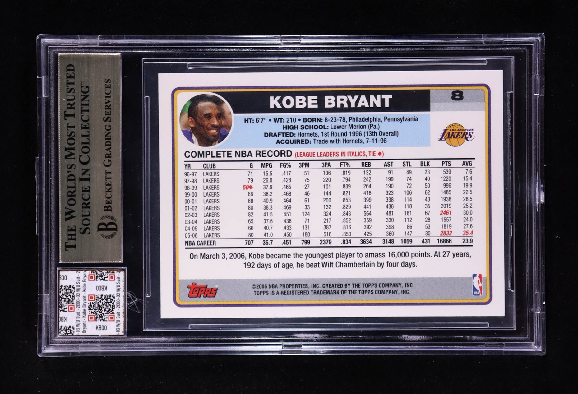 Kobe Bryant 2006-07 Topps #8 With Warm-Up Suit Swatch (BGS 9.5)