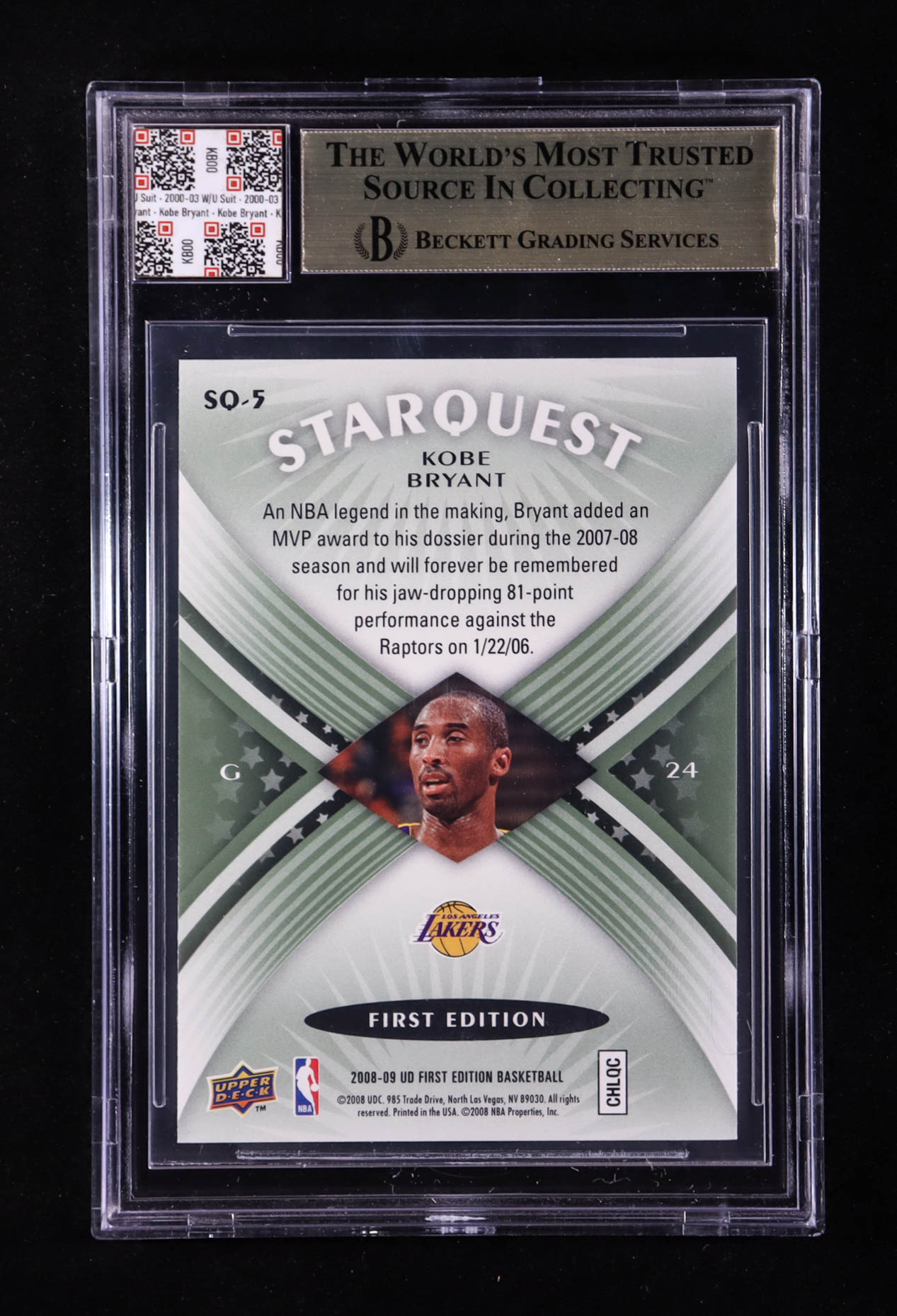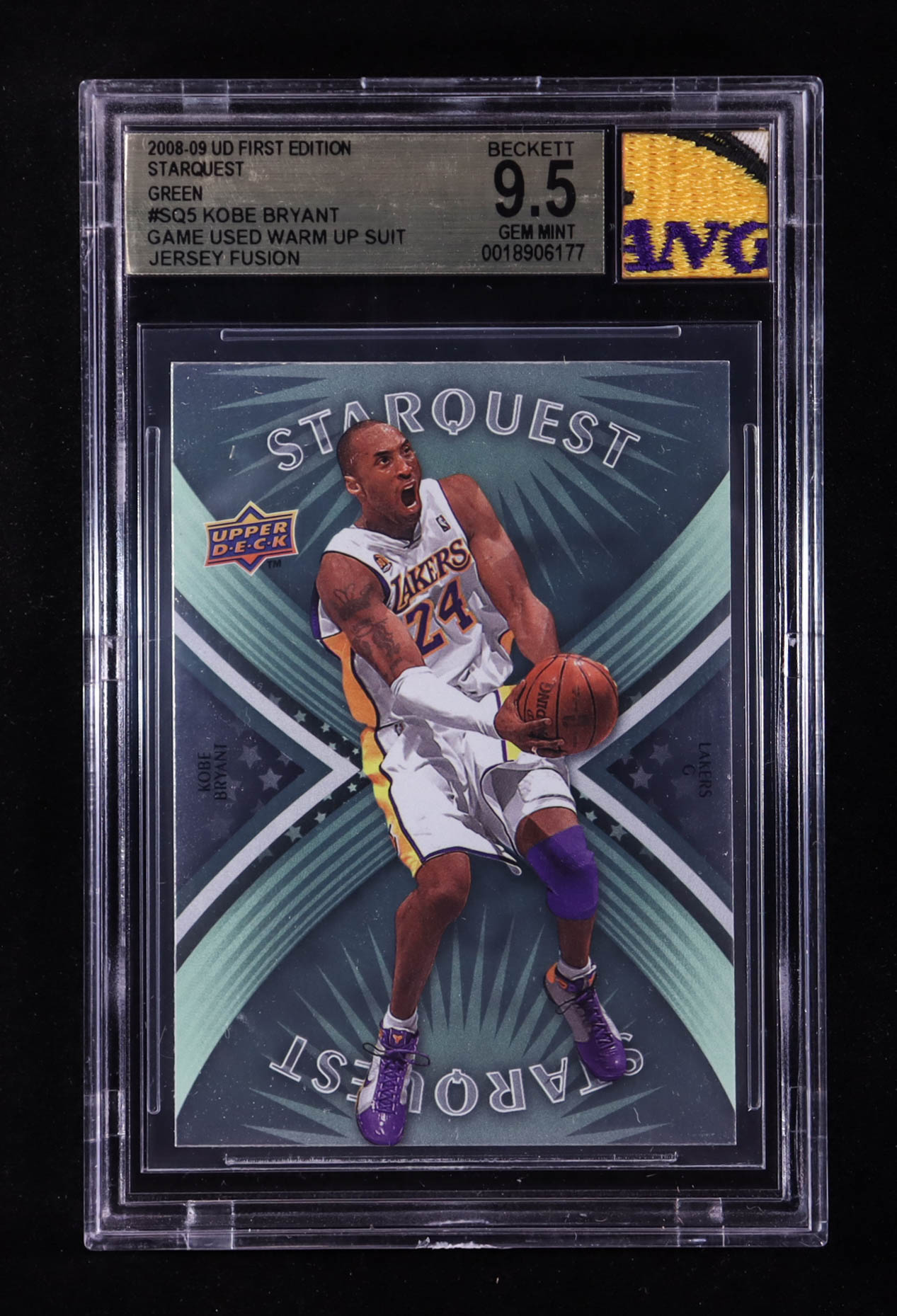 Kobe Bryant 2008-09 Upper Deck First Edition Starquest Green #SQ5 With Warm-Up Suit Swatch (BGS 9.5)