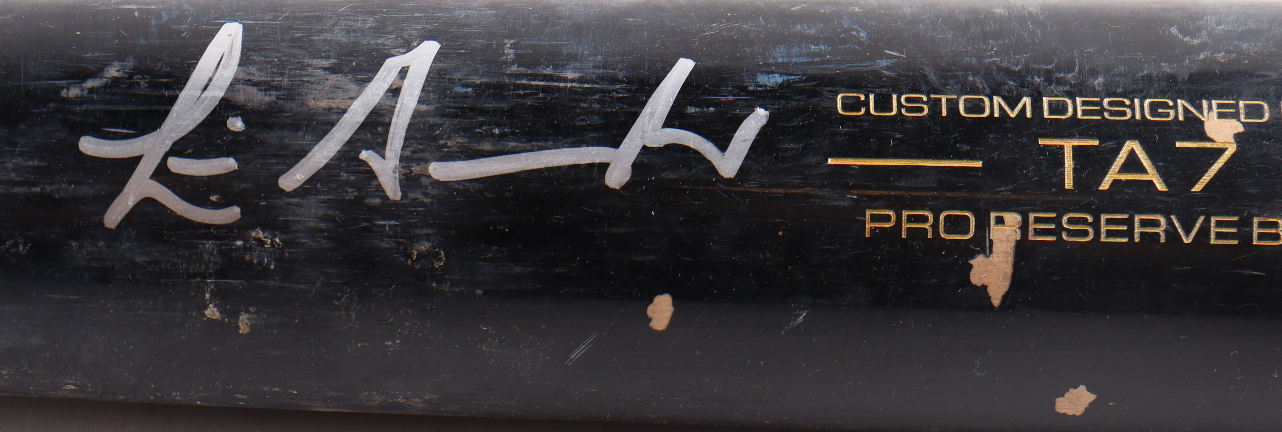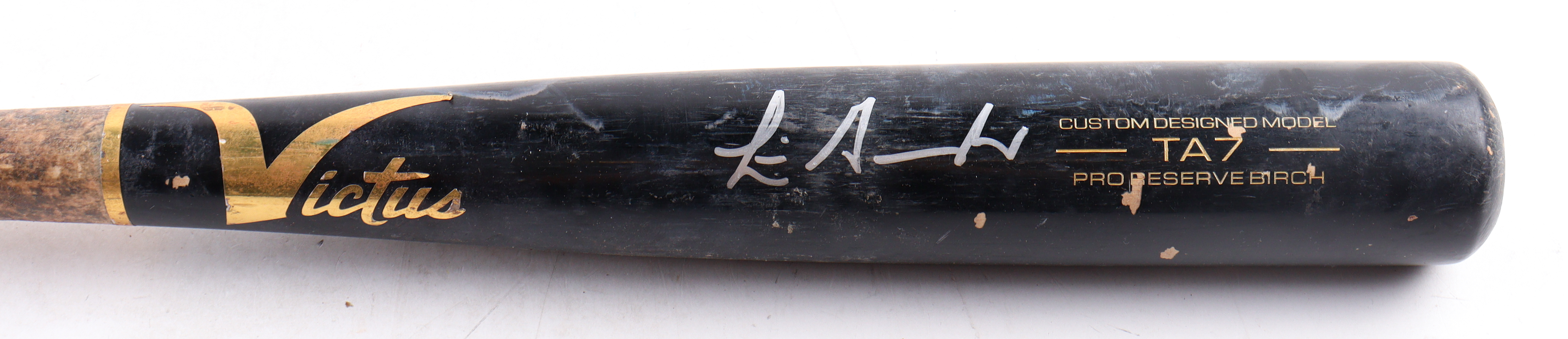 Victus custom designed model TA7 Baseball Bat. Hand-signed by Luis Gonzalez (Arizona Diamondbacks). Please note, the bat has been game-used and cracked by an unknown player.