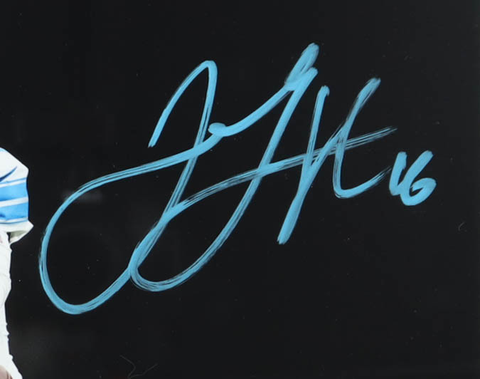 Custom frame measures 22.5" x 26.5" in size. Photograph is hand-signed by Jared Goff and Jahmyr Gibbs (Detroit Lions).