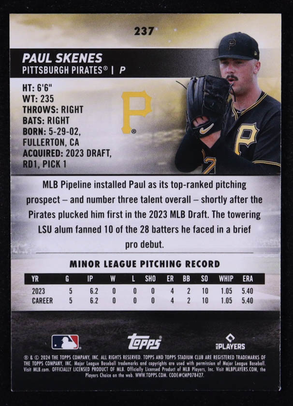Paul Skenes 2024 Stadium Club Red Foil #237 RC