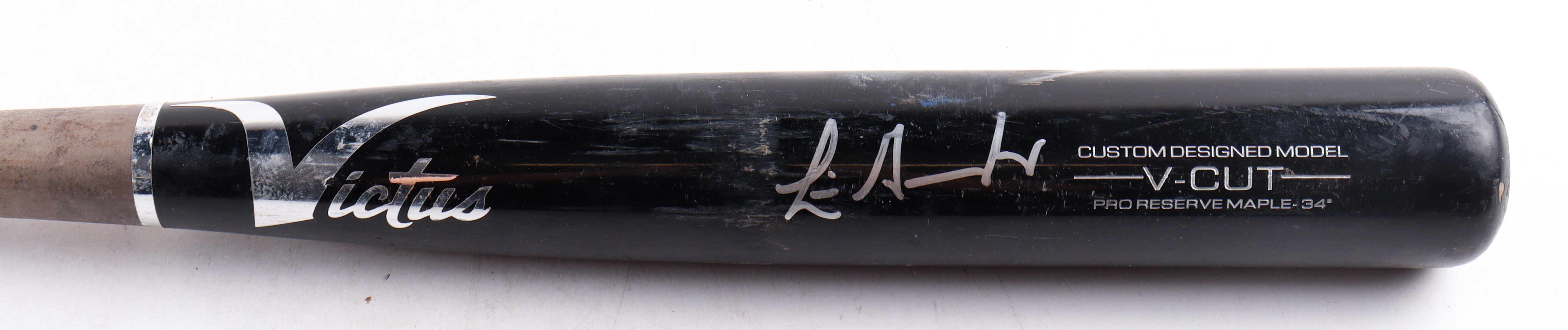 Victus custom designed model V-Cut Baseball Bat. Hand-signed by Luis Gonzalez (Arizona Diamondbacks). Please note, the bat has been game-used and cracked by an unknown player.