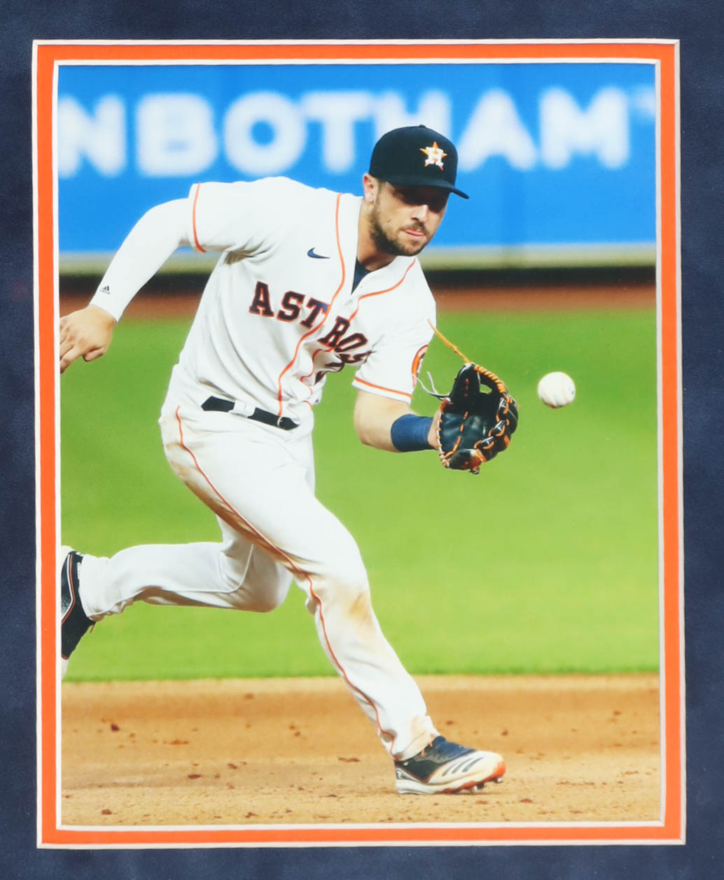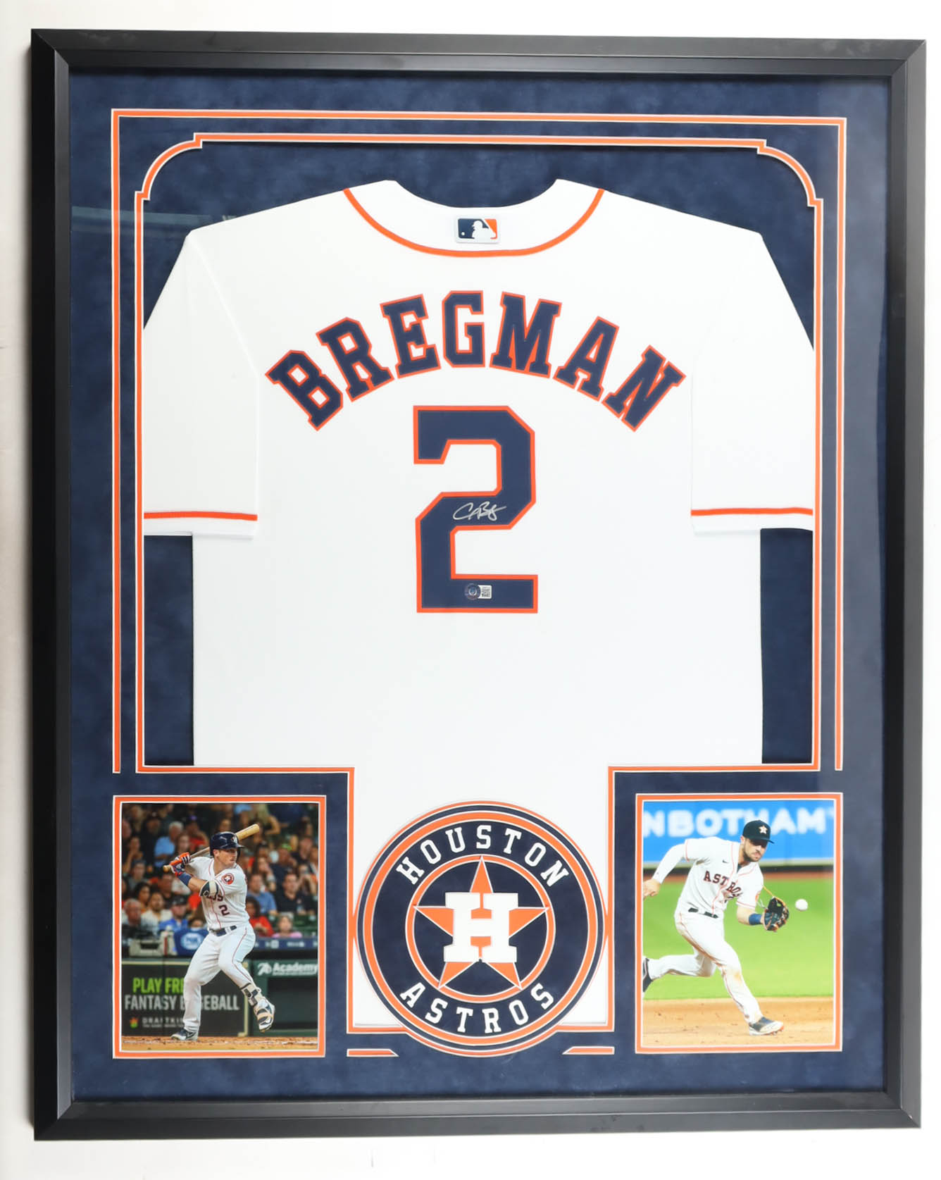 Custom frame measures 34" x 42" in size. Jersey has been hand-signed by Alex Bregman (Houston Astros).
